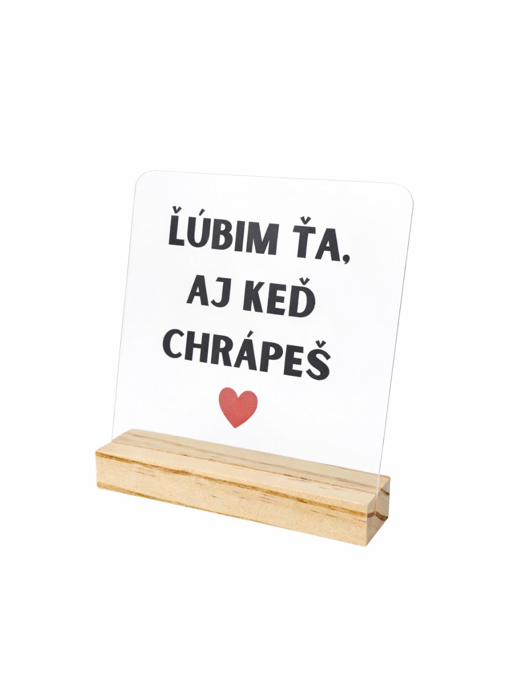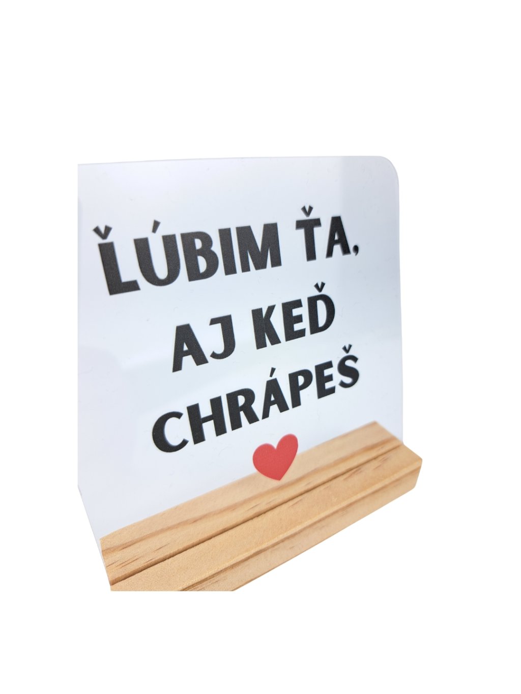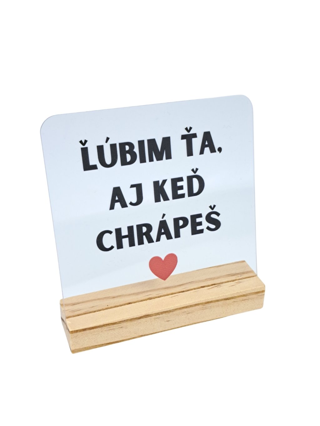 Vďaka možnosti zadať vlastný text vzniká jedinečný darček vytvorený presne na mieru obdarovanému. Priehľadné akrylové sklo pôsobí moderne a elegantne, zatiaľ čo drevený stojan dodáva produktu teplo a prirodzený vzhľad. Spolu tvoria harmonickú dekoráciu, ktorá zapadne do každého interiéru.
