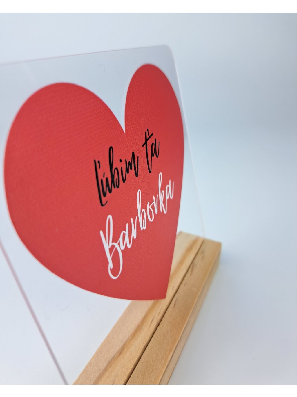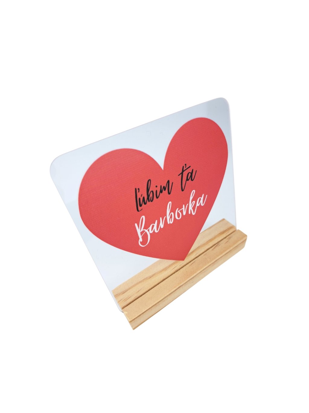 Akrylové sklo s dreveným stojanom je originálny a osobný darček, ktorý dokáže povedať viac než tisíc slov. Je ideálnou voľbou pre všetkých, ktorí chcú svojim blízkym vyjadriť lásku, vďačnosť alebo im jednoducho pripomenúť, akí sú pre nich dôležití. Či už ide o fotografiu, vyznanie lásky alebo krátky osobný odkaz, tento produkt sa stane krásnou spomienkou na výnimočné chvíle.