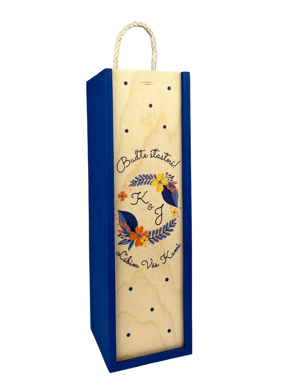Krabička je doplnená polosuchým ružovým vínkom so symbolom svadobných holubíc od Víno z dvora alebo frankovkou modrou z Karpatskej perly, ktorých chuť novomanželia zaručene ocenia.