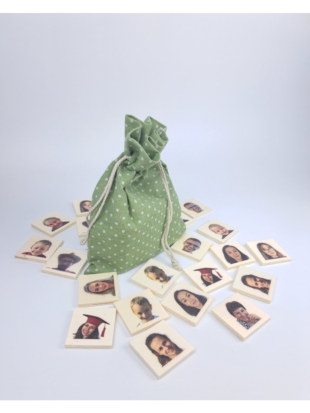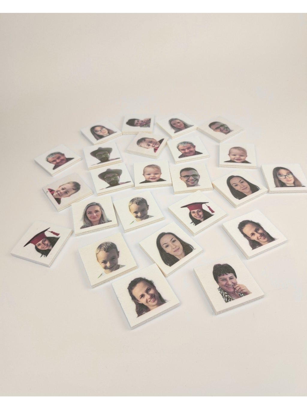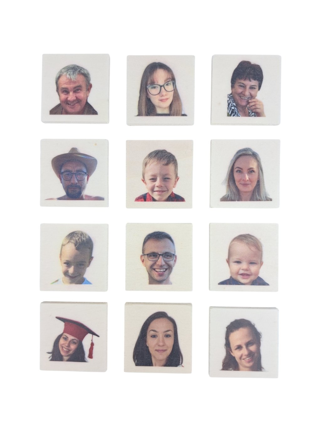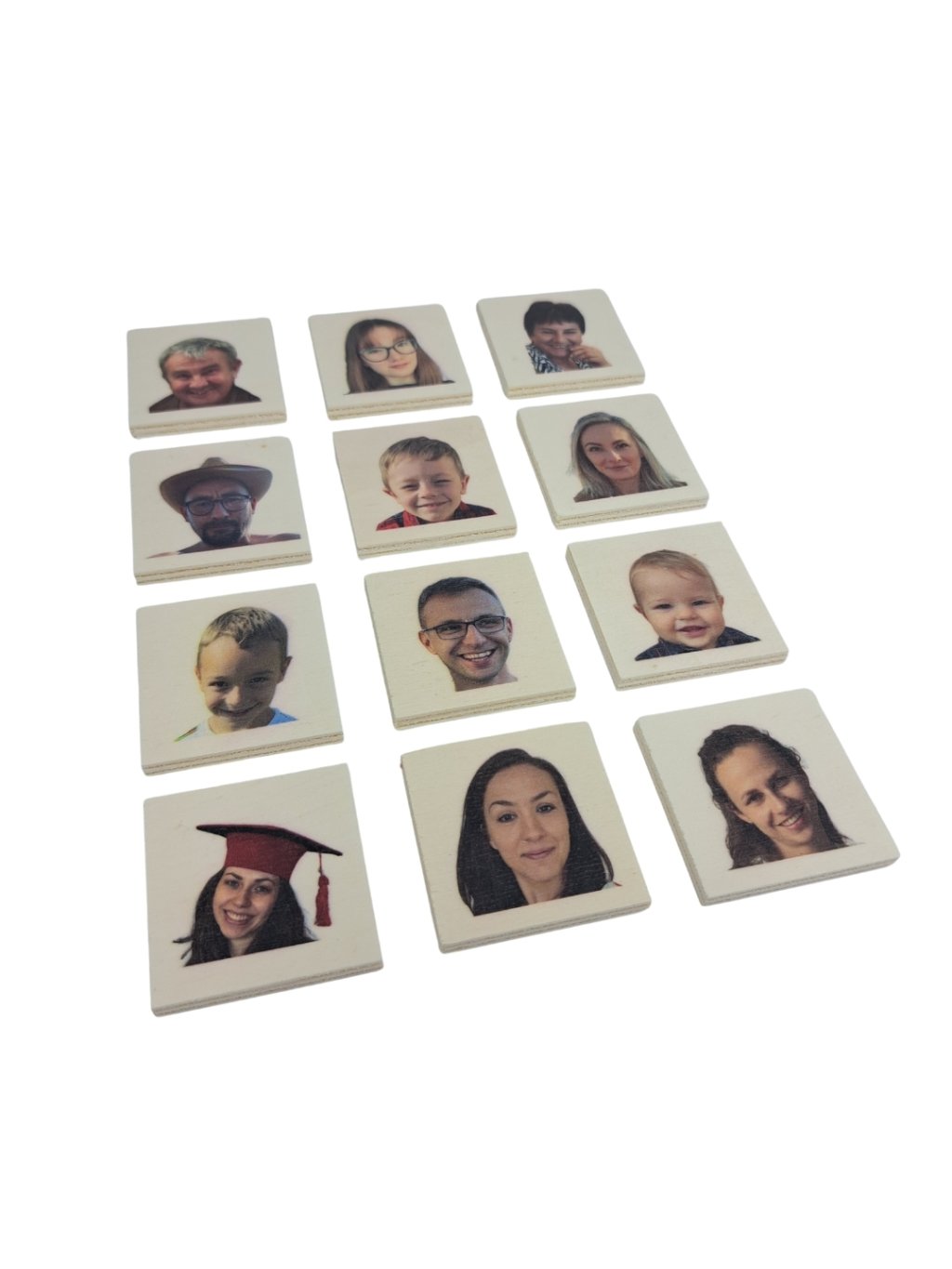 Personalizované drevené pexeso je jedinečná hra, ktorú vytvoríme presne podľa vás. Po objednaní nám zašlete fotografie členov rodiny, priateľov alebo blízkych a my ich na základe dodaných fotiek spracujeme a nahráme priamo na drevené pexeso. Je možné zaslať fotografie až 12 rôznych osôb, z ktorých vznikne originálna sada plná známych tvárí.
