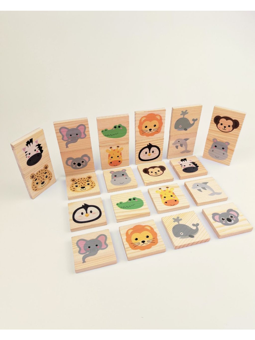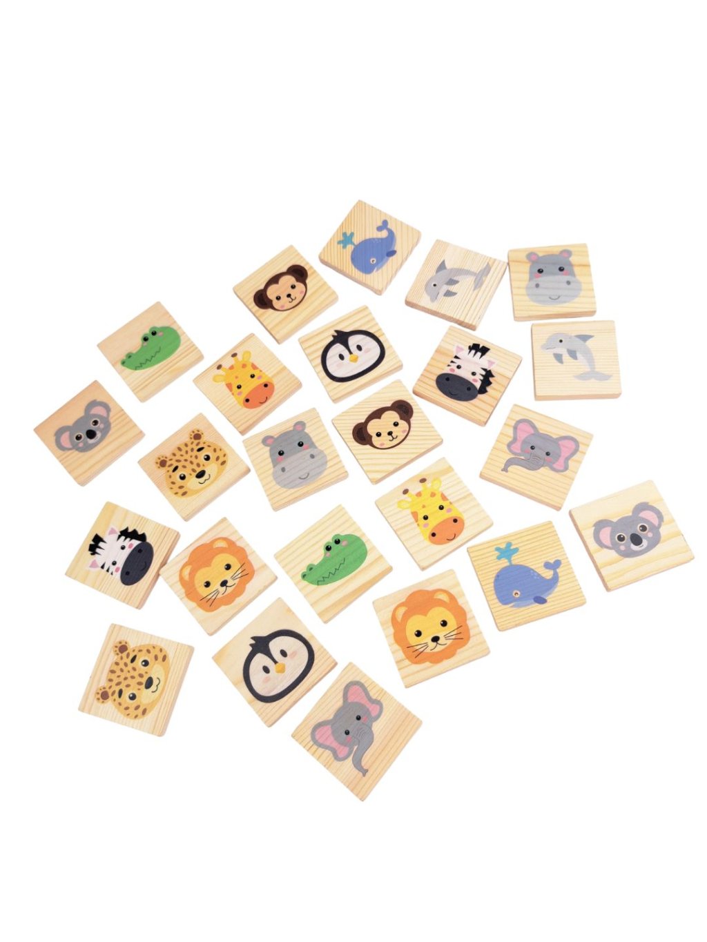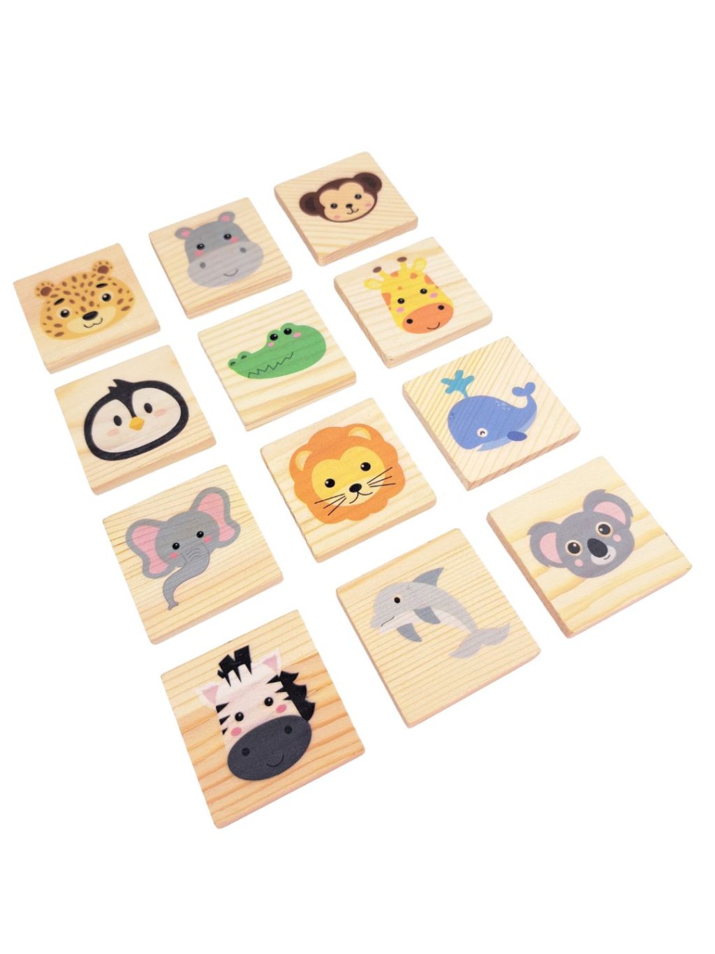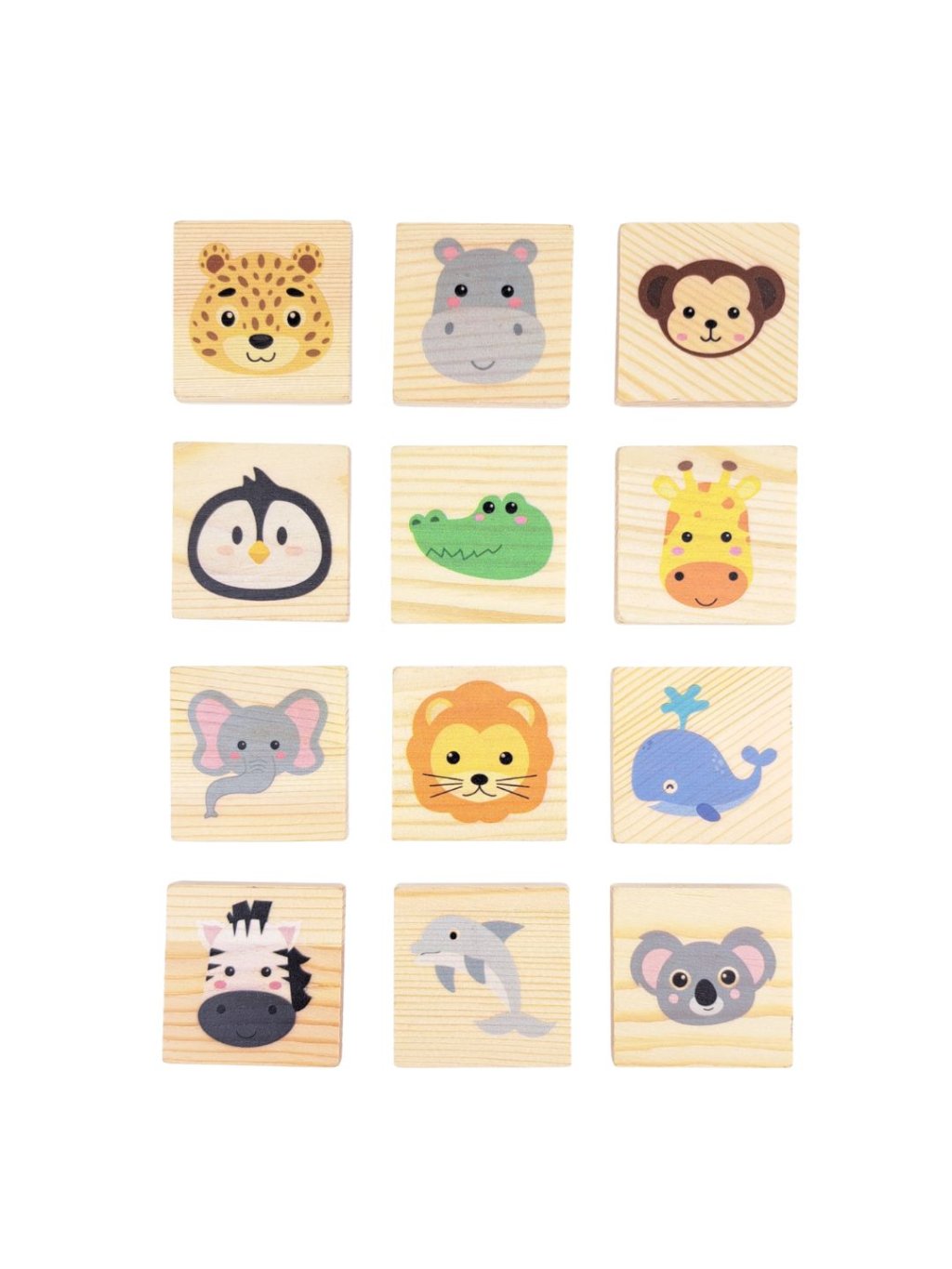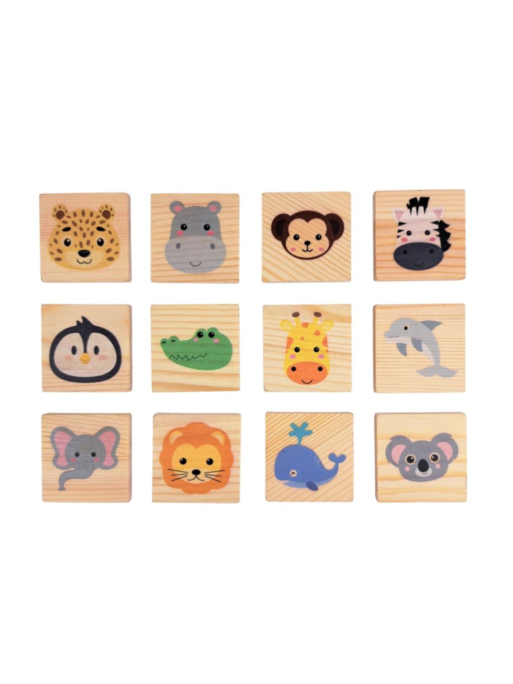 Krásne drevené pexeso s motívom exotických zvierat je ideálnou hrou pre deti aj celú rodinu. Kartičky sú tlačené priamo na borovicovom dreve, vďaka čomu má každá kocka jedinečnú kresbu dreva a prírodný vzhľad.