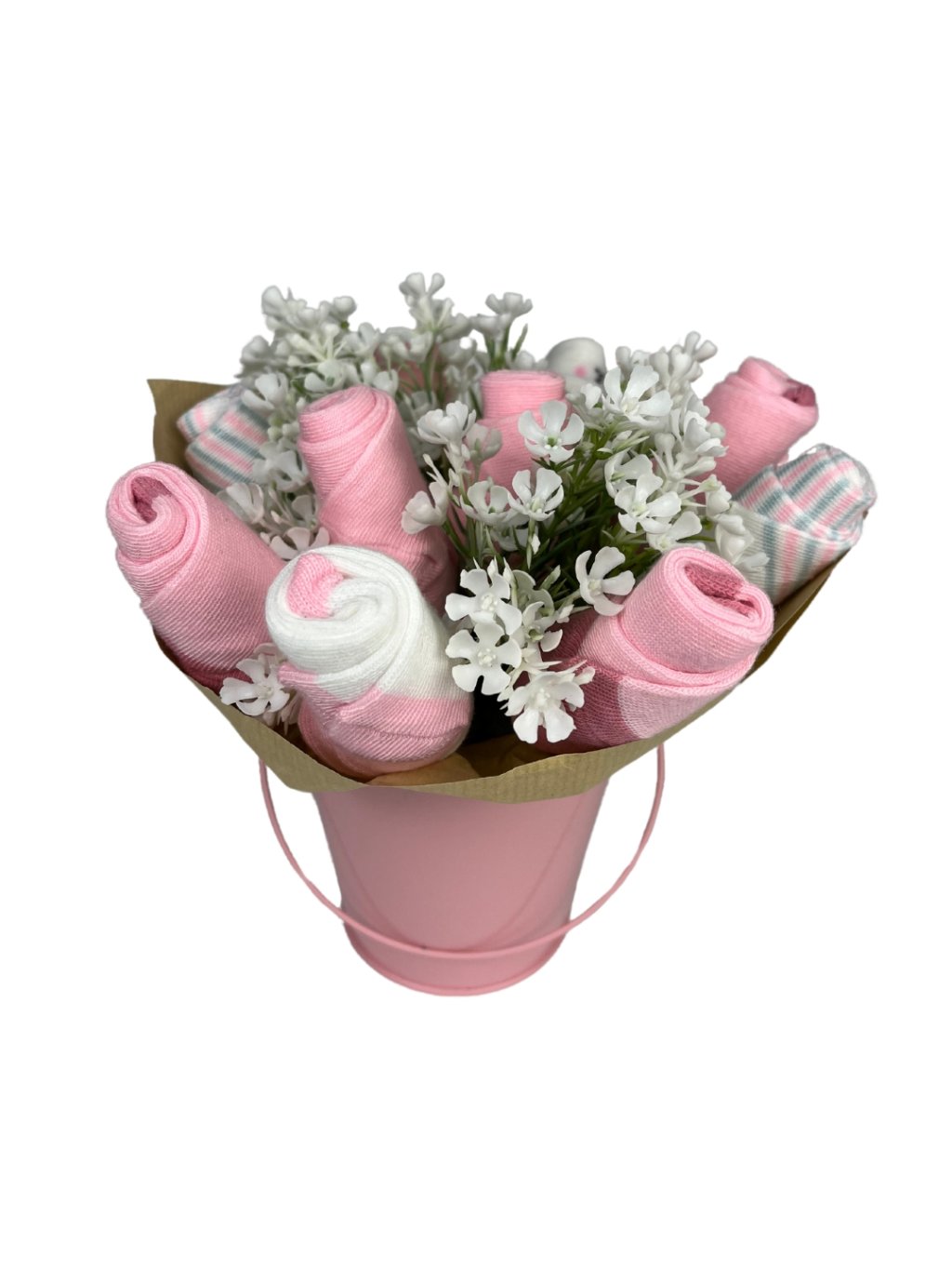 Čakajú ťa krstiny či oslava narodenia dievčatka a rozmýšľaš nad originálnym darčekom? Tento nádherný set trojkrabičky s ponožkovou kyticou je ideálnym darčekom, ktorý zhmotní spomienku na tieto zázračné chvíle a vyčarí úsmev na tvári, zakaždým keď sa naňho pozriete.